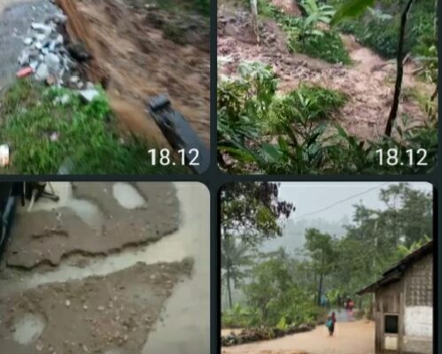 Garut – Hujan deras yang mengguyur wilayah Desa Talagawangi, Kecamatan Pakenjeng pada hari Minggu 26-Januari-2025 sore tadi , hujan yang sangat dahsyat mengakibatkan longsor yang menghambat akses jalan menuju beberapa kampung di desa tersebut. Akibat longsor dan meluapnya air ke jalan, kendaraan roda empat dan roda dua tidak dapat melintas.