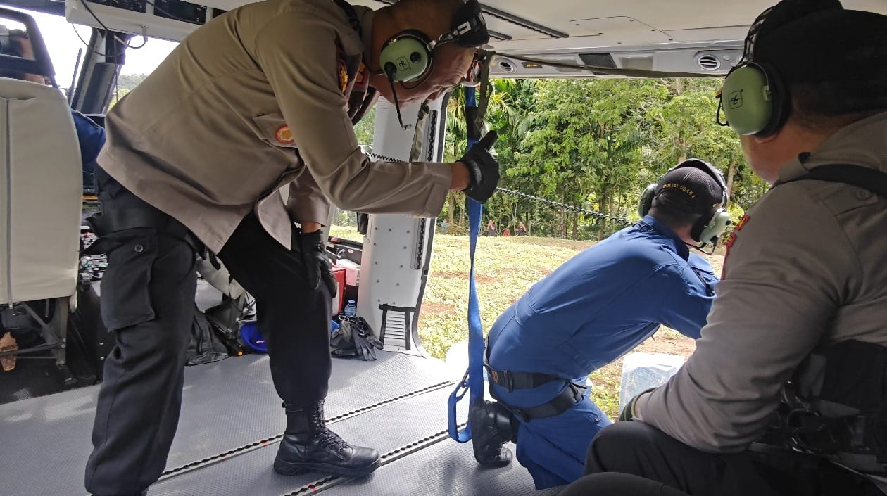 Kombes Pol Yudhi Surya Markus Pinem, S.I.K., M.H., yang memimpin distribusi bantuan tersebut menyampaikan bahwa pengiriman melalui udara menjadi opsi yang paling memungkinkan mengingat kondisi lapangan saat ini masih belum dapat dilalui kendaraan.
