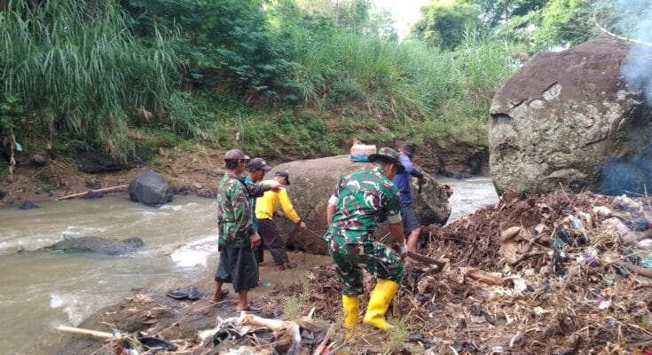– Pelda Komar Babinsa Koramil 1206/Pagerageung mengajak masyarakat melakukan kerja bakti pembersihan tumpukan sampah dan pohon bambu tumbang yang menutupi aliran sungai Cikidang di Kampung Sukamahi Desa Sukapancar Kecamatan Sukaresik Kabupaten Tasikmalaya Sabtu (21/12/2024).