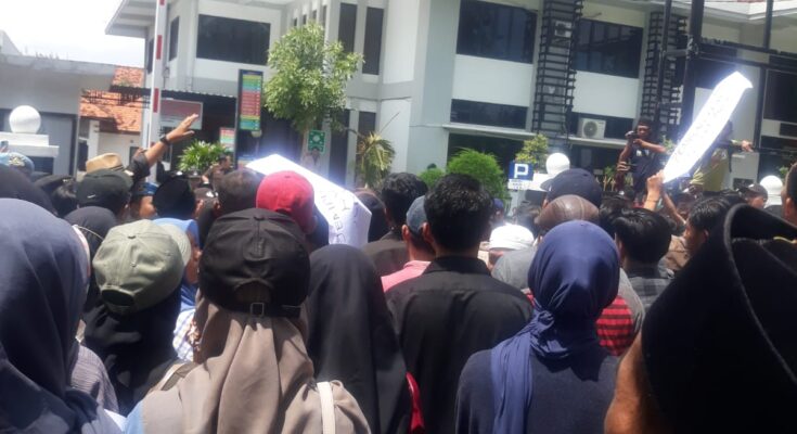 Yang menggelar demo .akhir dapat berjumpa dengan kasintel kejari sumenep.