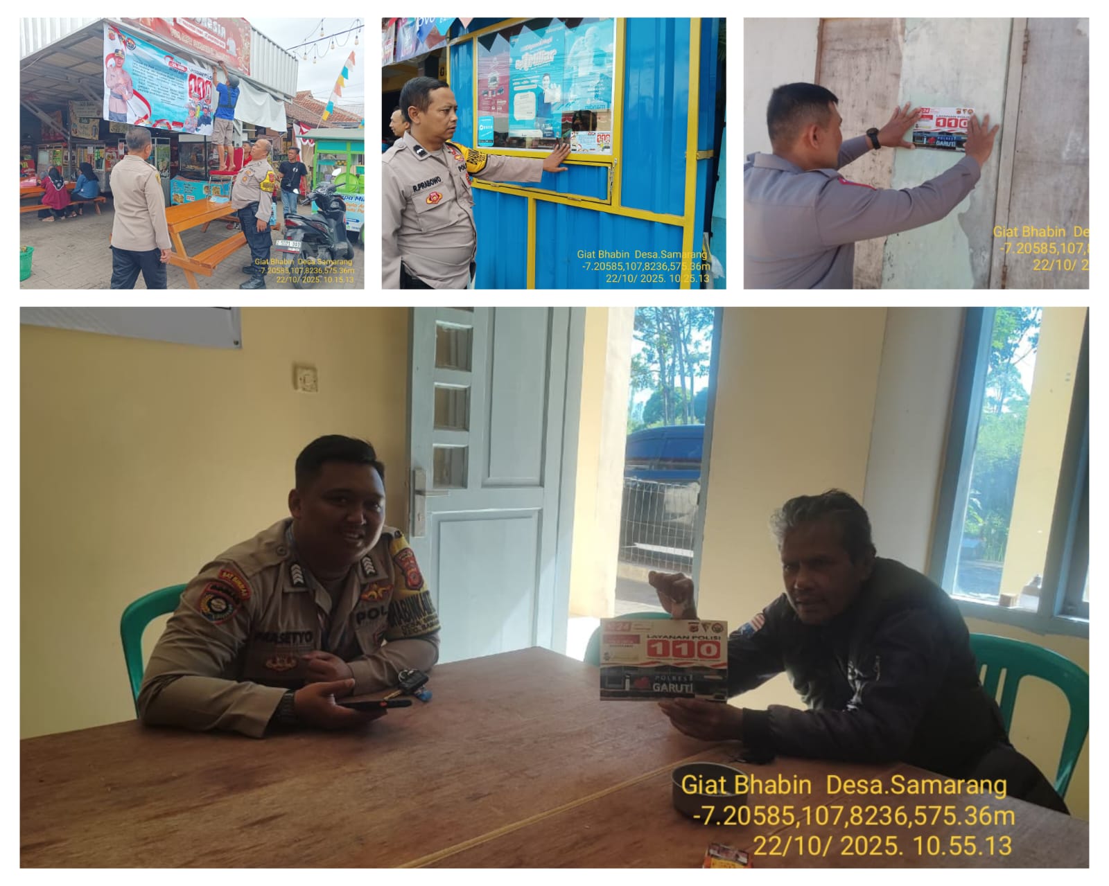 Personel Polsek Samarang Melaksanakan Sosialisasi dan pemasangan Stiker 110 di wilayah hukum Polsek Samarang.