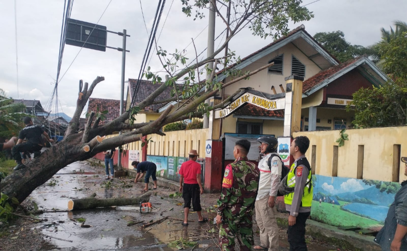 Mendapatkan laporan dari masyarakat, personel Polsek Kadungora dengan sigap merespons kejadian tersebut. Dipimpin langsung oleh Kapolsek Kadungora Kompol Alit Kadarusman, S.Pd., M.Si., petugas kepolisian bersinergi bersama anggota Koramil 1108 Kadungora dan BPBD Kabupaten Garut untuk melakukan evakuasi pohon tumbang dan pengamanan lokasi kejadian.