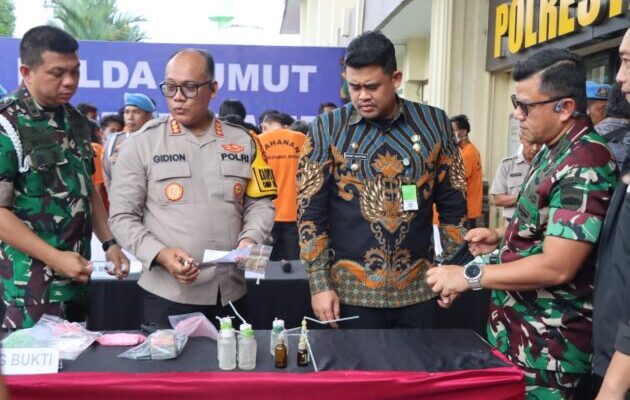 MEDAN , jejak-kriminal.com – Walikota Medan, Bobby Nasution memberikan apresiasi kepada seluruh jajaran baik Polrestabes Medan, Pomdam dan Denpom yang bahu membahu memberantas peredaran gelap narkoba.