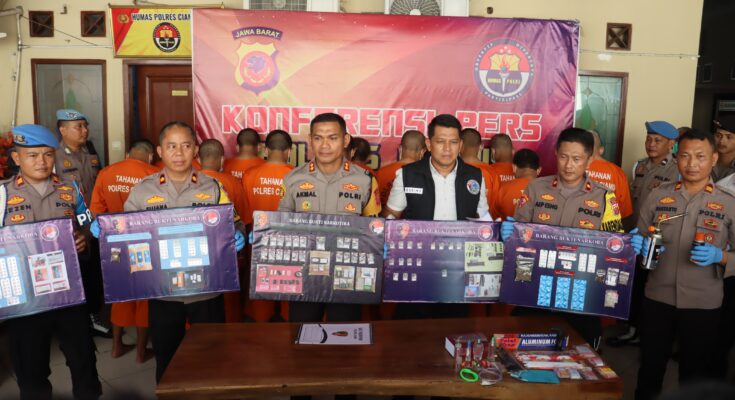 “Awal tahun 2025 ini, kami berhasil mengungkap 9 kasus tindak pidana penyalahgunaan narkoba di wilayah Kabupaten Ciamis. Dimana dari 9 kasus itu, sebanyak 13 orang kami tetapkan sebagai tersangka,” ujar Kapolres Ciamis Polda Jabar AKBP Akmal, SH., S.I.K., M.H., didampingi Wakapolres Ciamis Kompol Sujana, S.Pd., Kabag Ops Polres Ciamis Kompol Aep Saepudin, dan Kasat Res Narkoba Polres Ciamis Iptu R.E. Budhi M, SH., M.H., serta Kasi Humas Polres Ciamis Iptu Haryanto dalam konferensi pers di Makopolres Ciamis, Jalan Jenderal Sudirman No.271, Sindangrasa, Ciamis, Kabupaten Ciamis, Jawa Barat, Rabu (12/2/2025).
