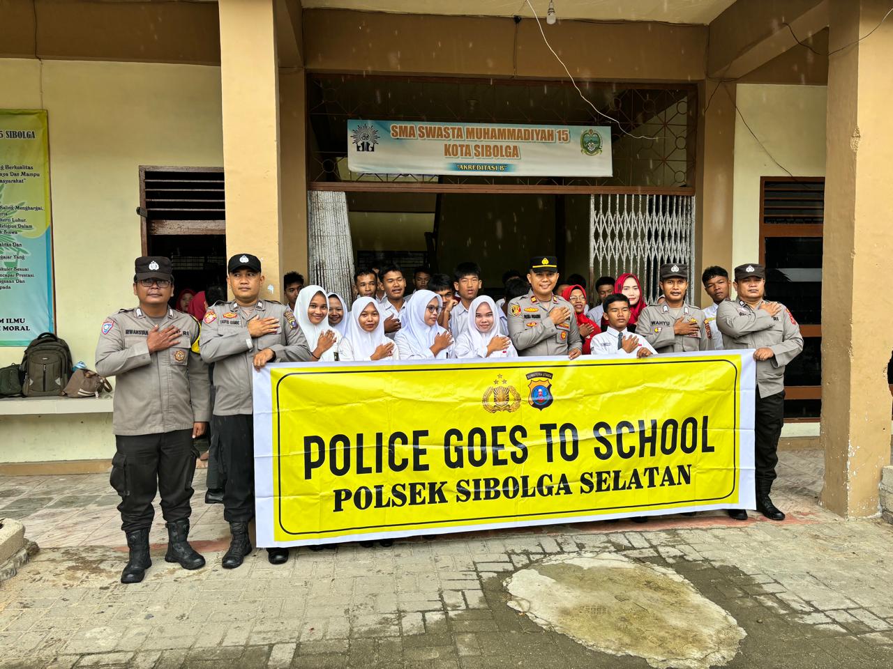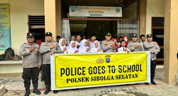 SIBOLGA — Dalam rangka menanamkan kesadaran hukum dan meningkatkan kedisiplinan di kalangan pelajar, Polda Sumut melalui Polsek Sibolga Selatan melaksanakan kegiatan “Police Goes to School” di SMA Swasta Muhammadiyah Sibolga yang berlokasi di Jalan Suran Bungaran Panggabean / Jalan Dame, Kelurahan Habil, Kecamatan Sibolga Selatan, Kota Sibolga.