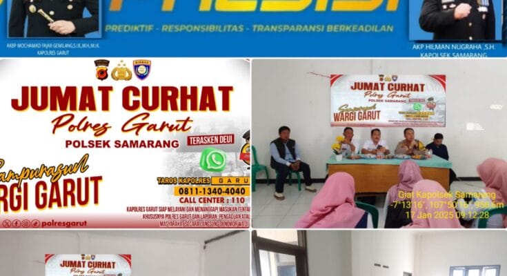 Polres Garut AKBP Mochamad Fajar Gemilang.,S.I.K.M.H.M.I.K.Melaluo Kapolsek Samarang AKP Hilman Nugraha.,S.H.M.H. yang didampingi Anggota Babinkamtibmas, AIPTU Gunawan. Bripka Eka Juanda. menyampaikan kedatangannya dalam rangka Melaksanakan Program Jum’at Curhat yang merupakan Program dari Kapolri dengan tujuan untuk menerima langsung Masukan maupun keluh kesah dari Masyarakat terkait dengan situasi dan Pelaksanaan tugas-tugas Kepolisian dilapangan sehingga kedepan bisa lebih baik dan situasi di wilayah Hukum Polsek Samarang