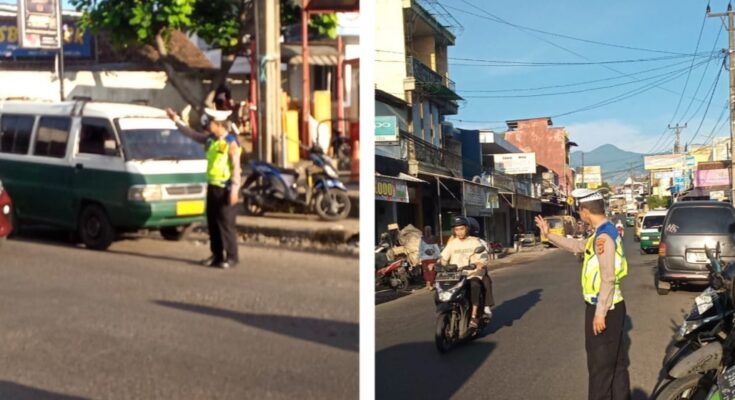 Jejak-kriminal.com-Garut,Minggu 27 April 2025.Polsek Samarang Polres Garut melaksanakan giat pengaturan lalu lintas di lokasi rawan pagi hari, tepatnya di sekitar Pasar Wisata Samarang.