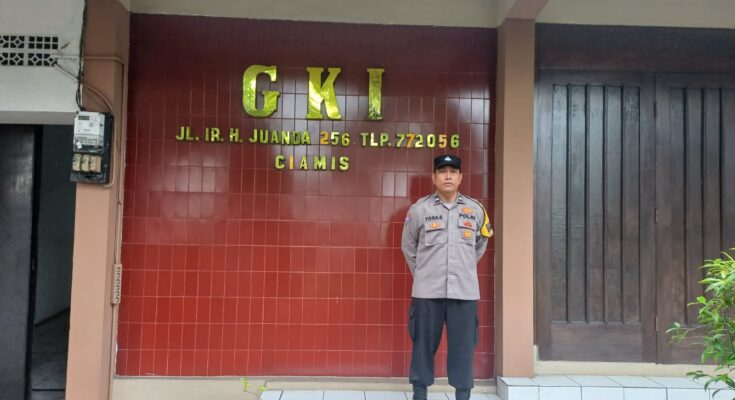 Salah satunya pengamanan yang dilakukan jajaran Polres Ciamis Polda Jabar saat pelaksanaan Kebaktian Minggu Pagi di sekitar Gereja Kristen Indonesia Ciamis. Personel bersiaga di sekitar Gereja Kristen Indonesia yang berada di Jl. Ir. H. Juanda No.090, Ciamis, Kabupaten Ciamis, Jawa Barat, Minggu (29/6/2025).