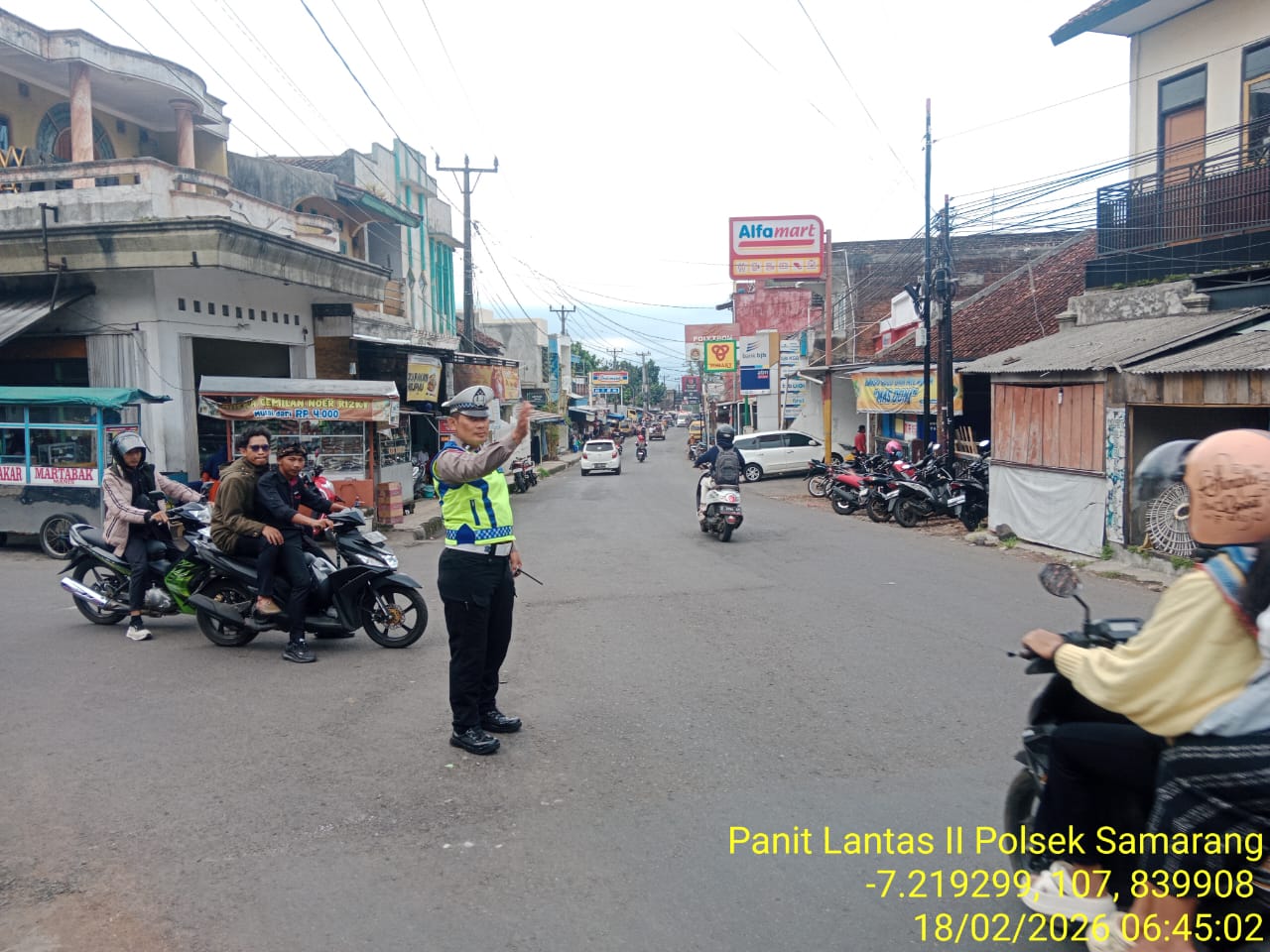 Jejak-kriminal.com-Garut Rabu 18 Febuari 2026. Polsek Samarang Polres Garut melaksanakan kegiatan pengaturan lalu lintas pagi hari yang berlokasi tepatnya di jalan Raya Samarang.