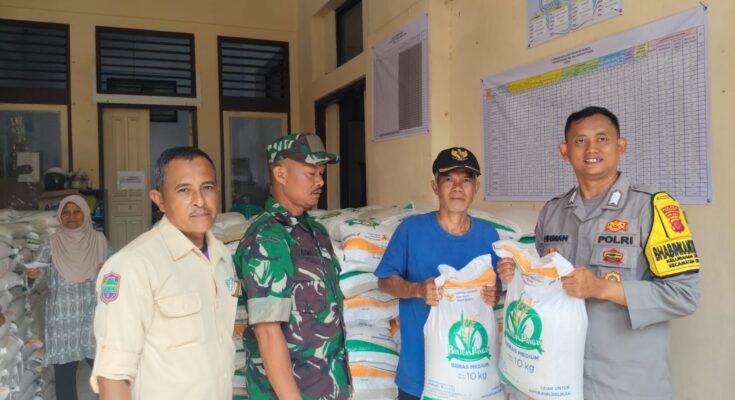 CIAMIS ~ Bhabinkamtibmas Kelurahan Ciamis, Bripka Firman Alpurkon, bersama Babinsa Kelurahan Ciamis, Peltu Rahmat Komarudin, aktif memonitoring pembagian beras bantuan dari Badan Pangan Nasional (Bapanas) di Aula Kelurahan Ciamis, Kecamatan Ciamis, Kabupaten Ciamis, Kamis (24/7/2025).