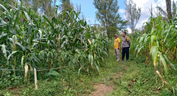 Pada kegiatan tersebut Bripka Andi Juhandi meninjau langsung kondisi tanaman jagung hibrida yang ditanam sebagai pakan ternak. Kebun jagung ini memiliki luas sekitar 980 m² dengan jumlah tanaman mencapai 600 pohon.