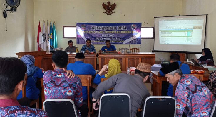 Ciamis – Kepolisian Sektor (Polsek) Sukadana kembali menunjukkan komitmennya dalam mendukung pembangunan berbasis partisipasi masyarakat. Hal ini terlihat dari kehadiran Bhabinkamtibmas Desa Margaharja, Aiptu Yadi Kusmayadi, dalam kegiatan Musyawarah Desa (Musdes) terkait penetapan Indeks Desa Membangun (IDM) di Desa Margajaya, Kecamatan Sukadana, Kabupaten Ciamis, pada Rabu (11/6/2025) sekitar pukul 13.40 WIB.