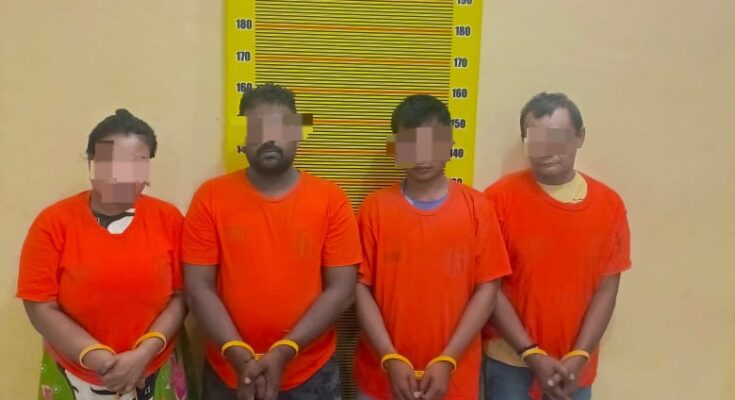 Dalam pengungkapan tersebut, petugas mengamankan empat orang pelaku yang diduga terlibat dalam jaringan peredaran narkoba, masing-masing berinisial SN (54), K (34), V (37), dan B (32).