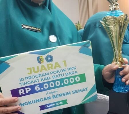 Jejak-kriminal.com // Batu Bara , Desa Sukaraja Kecamatan, Air Putih, Kabupaten Batu Bara, berhasil menjadi juara 1 tingkat Kabupaten, Selasa, tanggal 14 Oktober 2025, di aula kantor Bupati Batu Bara, dalam lomba penilaian PKK kategori lingkungan bersih sehat yang diselenggarakan pada 8 juli 2025 lalu, oleh ketua PKK Kabupaten Batu Bara Ny. Henny Heridawaty, H. Baharuddin Siagian S.H, M.Si, Lomba ini bertujuan untuk meningkatkan kesadaran masyarakat tentang pentingnya menjaga lingkungan bersih dan sehat. di kabupaten Batu Bara