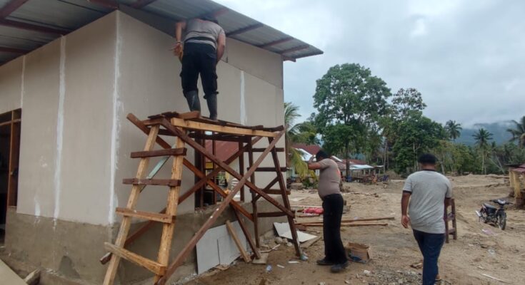 Tapanuli Selatan – Kepedulian Polri terhadap masyarakat terdampak bencana terus diwujudkan secara nyata. Personel Satuan Brimob Batalyon C Polda Sumatera Utara bersama TNI dan masyarakat setempat kembali melanjutkan pembangunan hunian sementara bagi korban banjir di Desa Tolang Julu, Kecamatan Sayur Matinggi, Kabupaten Tapanuli Selatan, Minggu (28/12/2025).