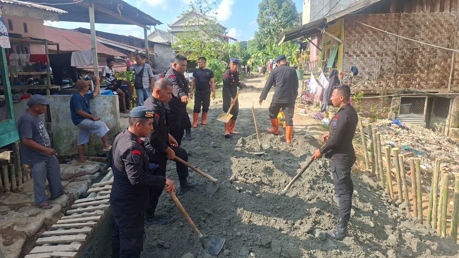 LANGKAT— Bencana banjir yang merendam sejumlah wilayah di Kabupaten Langkat bukan hanya memutus akses distribusi logistik, namun juga menghambat aktivitas harian masyarakat. Dalam merespon kondisi tersebut, Personel Batalyon-A Sat Brimob Polda Sumut turun langsung memperbaiki tanggul jebol dan gorong-gorong yang rusak di Kampung Pagar, Lingkungan II Kecamatan Tanjung Pura, pada Jumat (5/12/2025).