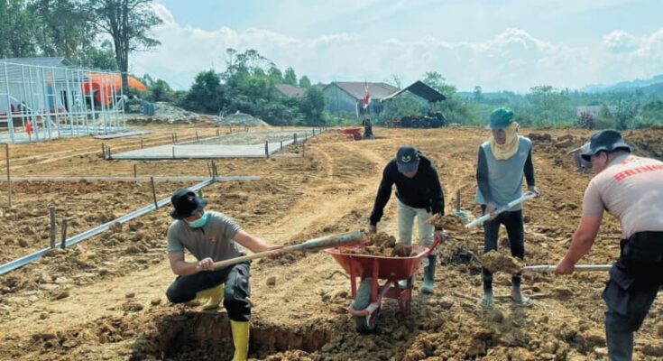 Tapanuli Selatan – Kepedulian terhadap masyarakat terdampak banjir bandang dan tanah longsor kembali ditunjukkan oleh personel Batalyon C Satuan Brimob Polda Sumatera Utara dengan turut serta membantu pembangunan Hunian Sementara (HUNTARA) bagi warga di Kecamatan Sipirok, Kabupaten Tapanuli Selatan.