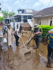 Banjir Rendam Permukiman di Karangpawitan, Polsek Karangpawitan Sigap Cek TKP dan Lakukan Penanganan