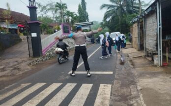 Pelayanan Masyarakat, Polsek Sukadana Polres Ciamis Bantu Anak Menyebrang di Area Sekolah