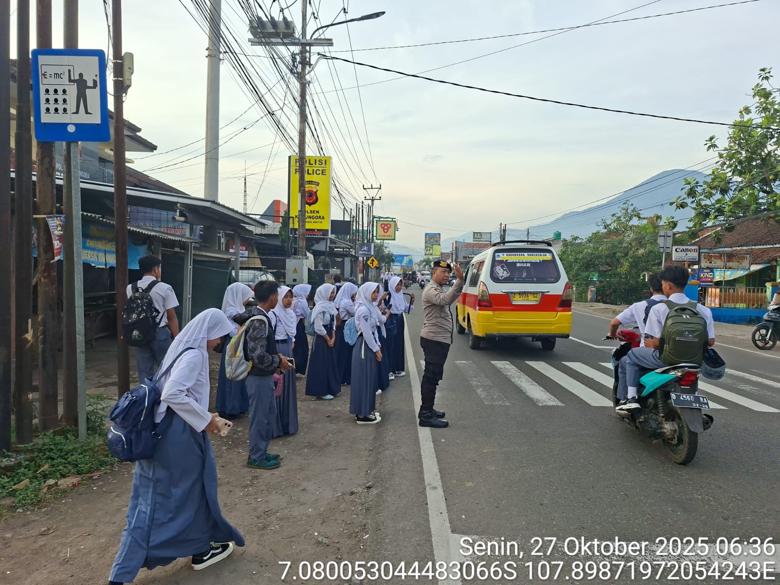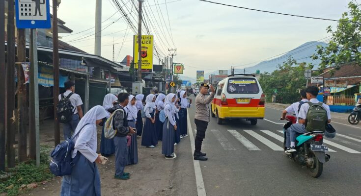 Garut – Dalam rangka menciptakan keamanan, keselamatan, ketertiban, dan kelancaran arus lalu lintas pada jam sibuk pagi hari, jajaran Polsek Kadungora Polres Garut melaksanakan kegiatan Rawan Pagi dan Pengaturan Lalu Lintas di depan SMP dan SMK Muhammadiyah 1 Kadungora, Senin (27/10/2025) pagi.