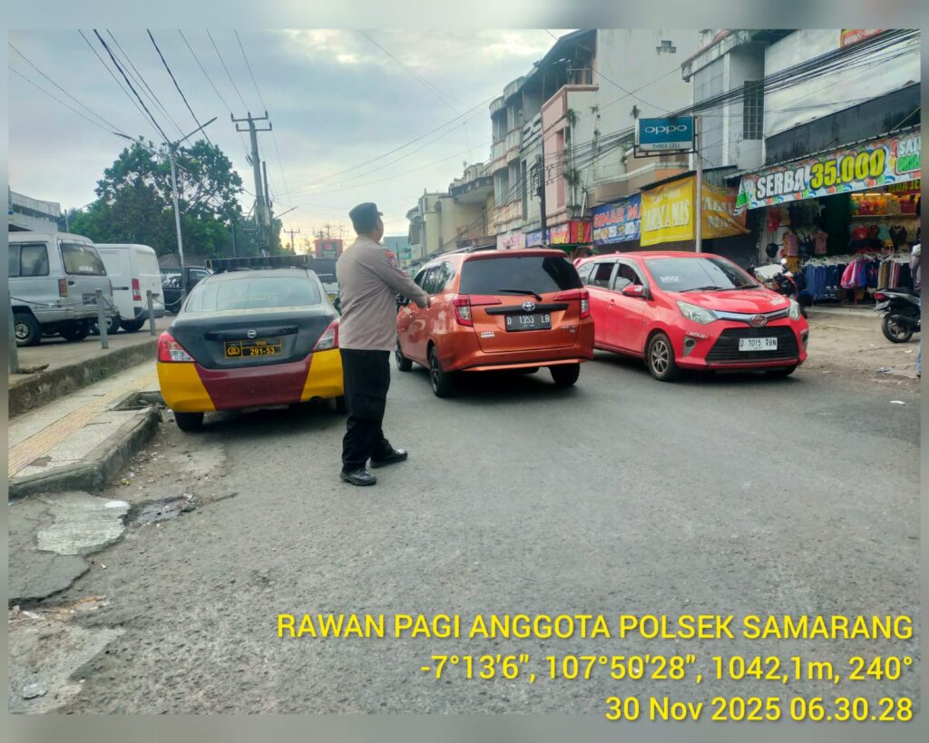 Polsek Samarang Polres Garut melaksanakan giat pengaturan lalu lintas pada jam pagi hari, di berbagai titik strategis di wilayah Samarang. Kegiatan ini bertujuan menjaga kelancaran arus kendaraan sekaligus meningkatkan keamanan dan keselamatan para pengguna jalan.