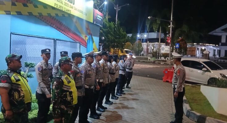 Salah satunya seperti yang dilakukan oleh personel gabungan pelaksanaan Operasi Lilin Lodaya 2025 di Pos Pengamanan Terpadu Polres Ciamis. Apel Malam ini dilaksanakan oleh seluruh anggota Pos Pam Terpadu Ops Lilin Lodaya 2025 Polres Ciamis, Alun Alun Ciamis, Ciamis, Kabupaten Ciamis, Jawa Barat, Selasa, 23 Desember 2025, malam.