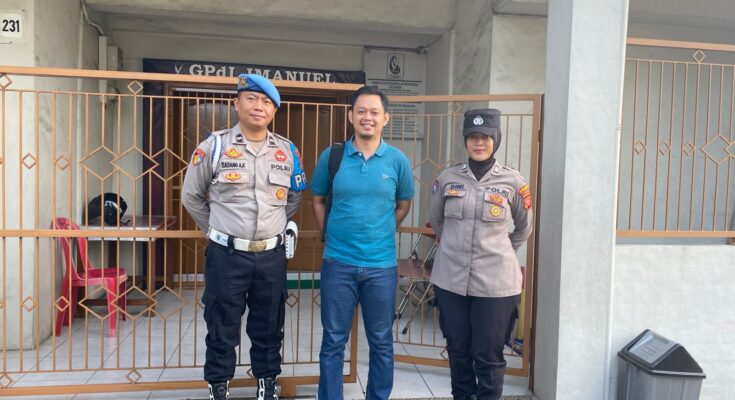 CIAMIS ~ Kapolsek Ciamis Polres Ciamis Polda Jabar Kompol Alan Dahlan memimpin langsung pelaksanaan pengamanan kegiatan keagamaan umat kristiani/nasrani di kawasan pusat kota Kabupaten Ciamis. Pengamanan ini salah satunya dilakukan pada Gereja Pantekosta di Indonesia (GPdI) Immanuel Ciamis, Jalan Ir. H. Juanda No. 231, Kelurahan Ciamis, Kecamatan Ciamis, Kabupaten Ciamis, Jawa Barat, Minggu (11/5/2025).