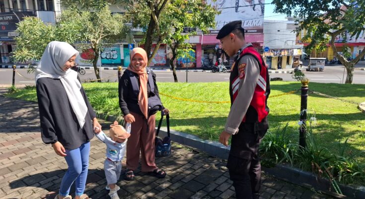 CIAMIS ~ Personel Satuan Samapta Polres Ciamis Polda Jabar melaksanakan patroli jalan kaki dalam rangka cipta kondisi di tempat keramaian masyarakat. Patroli jalan kaki ini dilaksanakan di kawasan Alun Alun Ciamis, Ciamis, Kabupaten Ciamis, Jawa Barat, Jumat (25/7/2025).