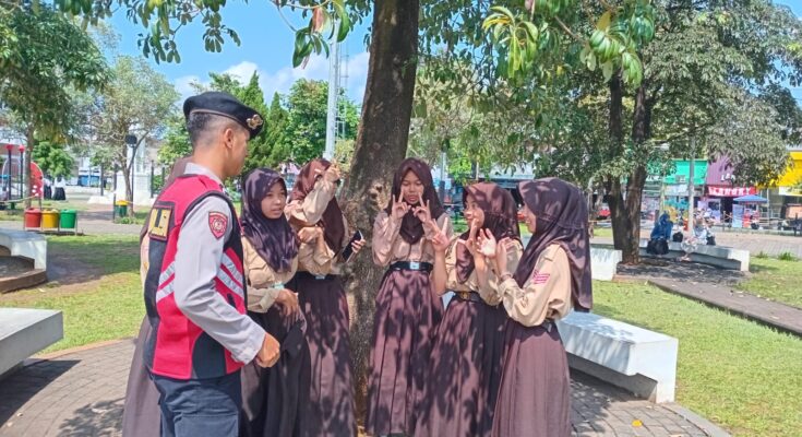 CIAMIS ~ Personel Satuan Samapta Polres Ciamis Polda Jabar melaksanakan patroli jalan kaki dalam rangka cipta kondisi di tempat keramaian masyarakat. Patroli jalan kaki ini dilaksanakan di kawasan Alun Alun Ciamis, Ciamis, Kabupaten Ciamis, Jawa Barat, Sabtu (2/8/2025).