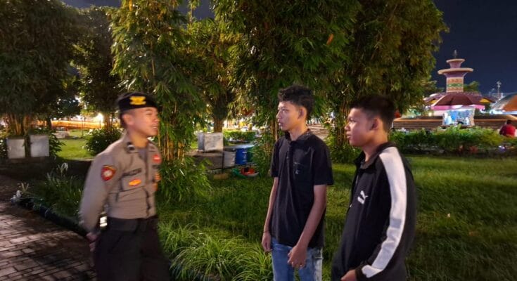 CIAMIS ~ Personel Satuan Samapta Polres Ciamis Polda Jabar melaksanakan patroli jalan kaki dalam rangka cipta kondisi di tempat keramaian masyarakat. Patroli jalan kaki ini dilaksanakan di kawasan Alun Alun Ciamis, Ciamis, Kabupaten Ciamis, Jawa Barat, Minggu, 19 Januari 2025, malam.