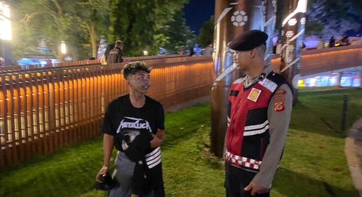 “Sebanyak tiga personel Sat Samapta berjalan kaki mendatangi setiap pedagang dan warga yang masih beraktifitas di kawasan Alun Alun Ciamis. Mereka hadir untuk memberikan pesan-pesan kamtibmas, terutama kejahatan jalanan, terutama di waktu rawan khususnya selama momen akhir Libur Panjang Sekolah dan menuju Tahun Ajaran Baru,” ujar Kasat Samapta Polres Ciamis Polda Jabar Iptu Zezen Zaenal Mutaqin dalam keterangan resminya, Minggu (13/7/2024).