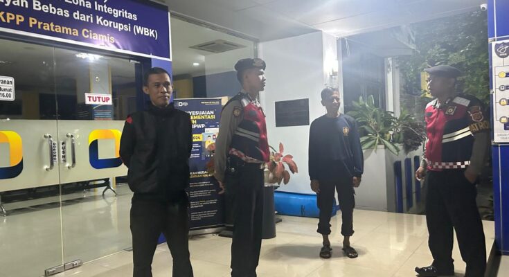 CIAMIS ~ Personel Satuan Samapta Polres Ciamis Polda Jabar melaksanakan Patroli objek vital dalam rangka cipta kondisi antisipasi gangguan kamtibmas. Patroli tersebut dilaksanakan secara mobile oleh unit patroli Sat Samapta Polres Ciamis Polda Jabar, dan menyambangi Kantor Pajak Ciamis, Kabupaten Ciamis, Jawa Barat, Jumat, 26 September 2025, malam.