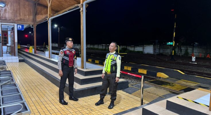 CIAMIS ~ Personel Satuan Samapta Polres Ciamis Polda Jabar melaksanakan Patroli Dialogis dalam rangka cipta kondisi antisipasi gangguan kamtibmas. Patroli kali ini dengan menyambangi Stasiun Kereta Api Ciamis, Ciamis, Kabupaten Ciamis, Jawa Barat, Kamia (11/9/2025), dini hari.