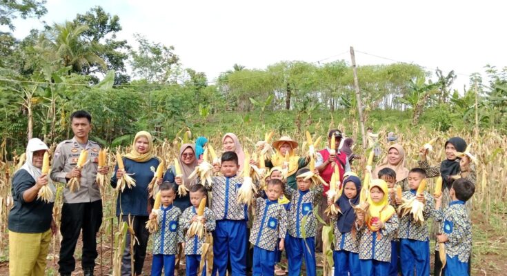 CIAMIS ~ Personel Polsek Cisaga Polres Ciamis Polda Jabar mendatangi masyarakat Desa Tanjungjaya yang sedang beraktifitas panen jagung dilahan Kelompok Wanita Tani Madasari. Lahan pertanian KWT Madasari itu berada di Dusun Tenjolaya, Desa Tanjungjaya, Kecamatan Cisaga, Kabupaten Ciamis, Jawa Barat, Selasa (25/2/2025).