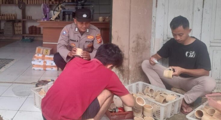 Seperti yang dilaksanakan jajaran Polsek Rajadesa Polres Ciamis Polda Jabar. Dimana saat itu Ps. Kanit Binmas Polsek Rajadesa Bripka Angga Sundara hadir mendatangi para Pengrajin Gelas Bambu di Dusun Citapen Pasir, Desa Sukajaya, Kecamatan Rajadesa, Kabupaten Ciamis, Jawa Barat, Rabu (12/2/2025).