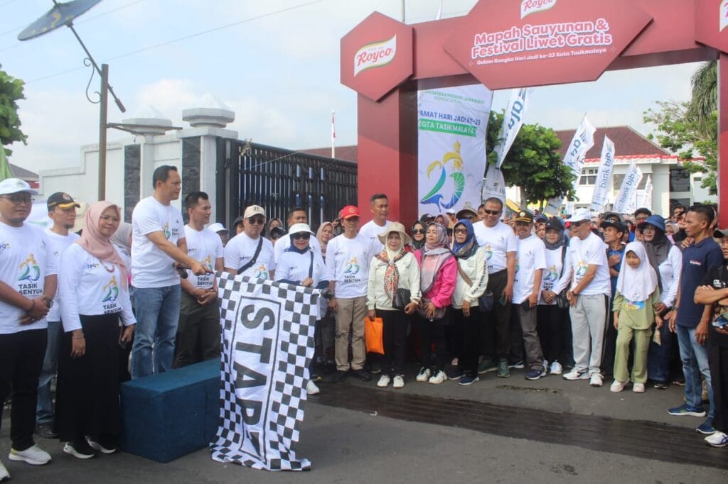 Kegiatan “Mapah Sauyunan” Jalan Sehat Kota Tasikmalaya dalam rangka memeriahkan peringatan hari jadi Kota Tasikmalaya Ke 23 Tahun 2024 yang diselenggarakan di Kantor Bale Kota Tasikmalaya dan dihadiri oleh masyarakat, pejabat Forkopimda serta ASN jajaran Pemerintah Kota Tasikmalaya berlangsung dengan tertib, aman dan lancar.