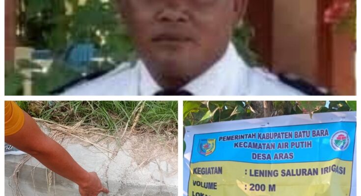 Batubara –Sumatera Utara-Jejak-Kriminal.Com- Pembangunan saluran irigasi di Dusun V, Desa Aras, Kecamatan Air Putih, Kabupaten Batubara kembali menuai sorotan tajam dari warga dan awak media. Proyek yang menelan anggaran Dana Desa (DD) sebesar Rp100.790.000 itu dinilai dikerjakan asal jadi, bahkan kini kondisinya sudah miris dan hancur meski baru berumur sekitar tiga bulan.