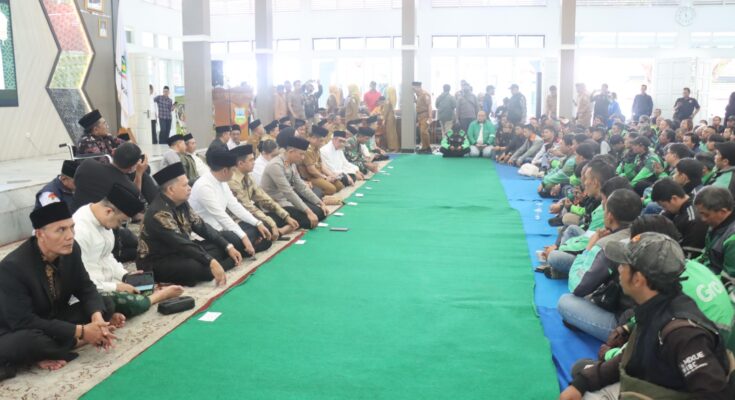 Garut | Kapolres Garut AKBP Yugi Bayu Hendarto bersama jajaran Forum Koordinasi Pimpinan Daerah (Forkopimda) Kabupaten Garut menghadiri kegiatan Doa Bersama dan Silaturahmi dengan ratusan komunitas driver ojek online (Ojol), tokoh agama, serta tokoh masyarakat di Gedung Pendopo Garut, Senin (1/9/2025).