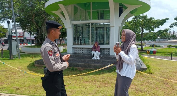 Pengamanan ini melibatkan dua personel Satuan Samapta Polres Ciamis Polda Jabar. Keduapersonel itu, diantaranya Bripda Isyan dan Bripda Alfi. Mereka berjalan kaki mendatangi setiap warga yang beraktifitas pagi hari di kawasan Alun Alun Ciamis untuk memberikan pesan-pesan kamtibmas.