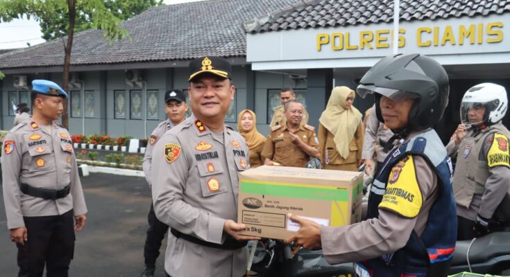 CIAMIS – Polres Ciamis kembali menunjukkan komitmennya dalam mendukung program ketahanan pangan nasional. Pada Senin (22/9/2025), Polres Ciamis menerima bantuan 16 ton lebih benih jagung dari Dinas Pertanian dan Ketahanan Pangan Kabupaten Ciamis. Serah terima ini dilangsungkan dalam sebuah upacara di halaman apel Mapolres Ciamis.