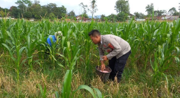 Garut – Dalam rangka mendukung program ketahanan pangan nasional, Polsek Banyuresmi Polres Garut melalui Bhabinkamtibmas Desa Sukaratu melaksanakan pendampingan kepada Kelompok Tani Sinar Fauzan pada Rabu (13/8/2025) di lahan Kampung Jolok Fauzan, Desa Sukaratu, Kecamatan Banyuresmi.