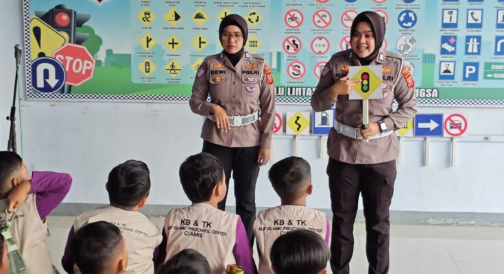 Sambutan hangat dan humanis terpancar dari senyum manis personel Polwan Satuan Lalu Lintas Polres Ciamis kepada para anak TK Alif Islamic Preschool. Mereka dengan ramah dan murah senyum mengenalkan tugas Kepolisian, edukasi tertib berlalu lintas, rambu-rambu lalu lintas serta peralatan penunjang tugas Kepolisian turut diperkenalkan oleh para Polwan dan Personel Satuan Lalu Lintas Polres Ciamis Polda Jabar.