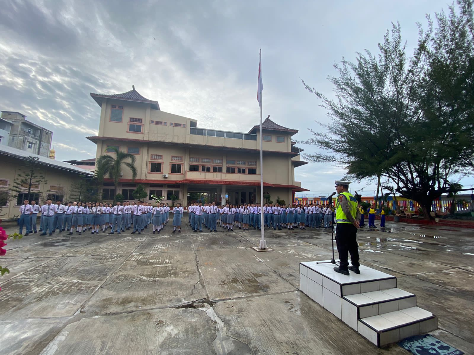 SIBOLGA – Dalam upaya meningkatkan kesadaran dan kedisiplinan berlalu lintas di kalangan pelajar, Polda Sumatera Utara (Polda Sumut) melalui Satuan Lalu Lintas (Sat Lantas) Polres Sibolga melaksanakan kegiatan “Police Goes To School” di SMA Tri Ratna Sibolga, Selasa (11/11/2025) pagi.