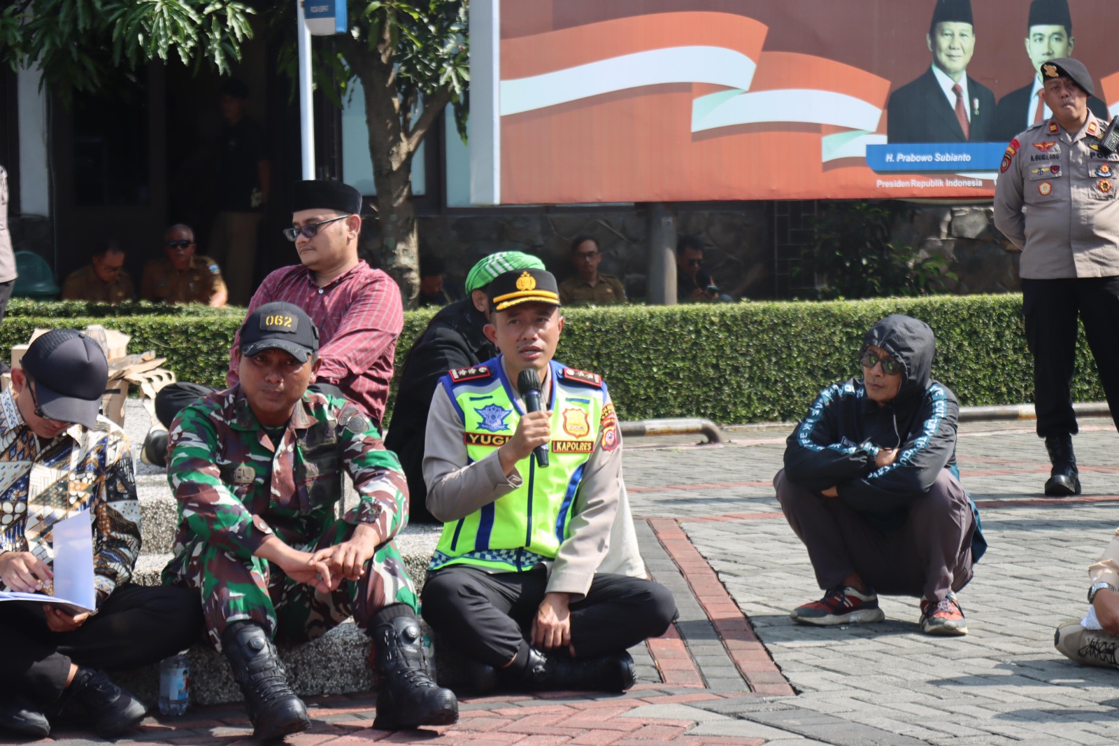 Suasana semakin cair ketika Kapolres Garut bersama Forkopimda memilih duduk bersila di tengah lapangan Setda Garut, bergabung dengan mahasiswa dan masyarakat untuk berdialog secara langsung dan terbuka.