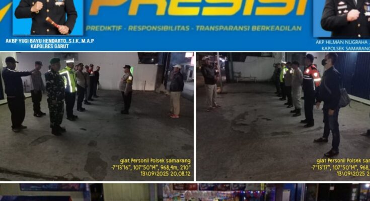 Jejak-kriminal.com-Garut Sabtu 13 September 2025 Polsek Samarang Polres Garut menggelar apel gabungan dalam rangka cipta kondisi di halaman Bank Mandiri Samarang, Kecamatan Samarang, Kabupaten Garut. Apel dipimpin oleh Panit Reskrim Polsek Samarang, Ipda Abdurokhman.