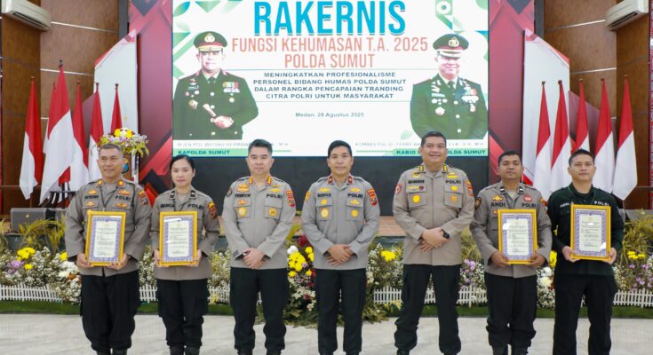 Medan – Bidhumas Polda Sumatera Utara menggelar Rapat Kerja Teknis (Rakernis) Fungsi Kehumasan Tahun Anggaran 2025, Kamis (28/8/2025). Kegiatan ini mengusung tema “Meningkatkan Profesionalisme Personel Bidang Humas Polda Sumut dalam Rangka Pencapaian Trending Citra Polri untuk Masyarakat”.