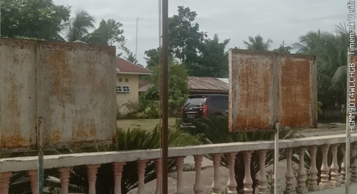 Dihalaman Kantor. pangulu Nagori Talun Rejo, kecamatan Pematang Bandar, kabupaten Simalungun, tampak Bendera Merah Putih berkibar dalam kondisi robek dan kusam. Kamis, 23 Oktober, 2025 pukul 10,38 WIB