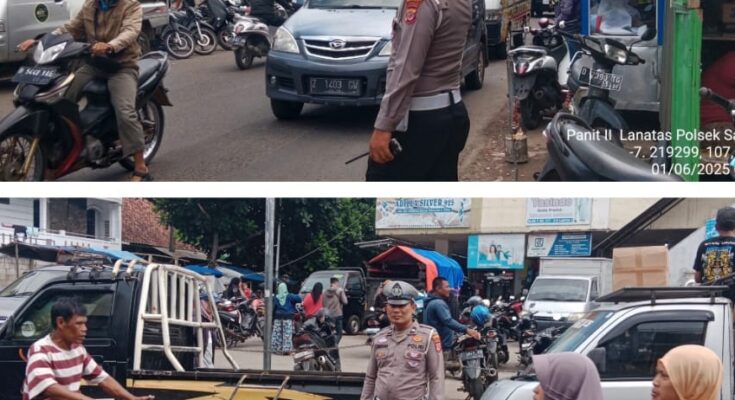 Kegiatan pengaturan lalulintas di pagi anggota polsek Samarang Polres Garut, yang lokasinya bertempat di depan Pasar Wisata Samarang Kecamatan Samarang.