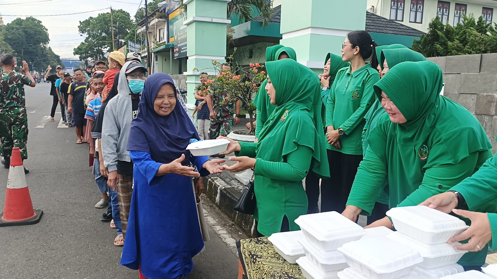 Sejak menjelang waktu berbuka, para pengurus Persit tampak sigap dan penuh semangat. Nasi box ditata rapi, doa dipanjatkan dalam hati, dan senyum disematkan sebagai pelengkap pelayanan.