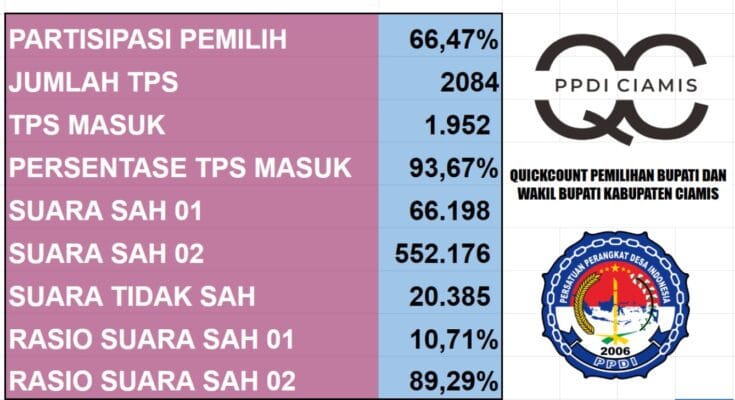 Jejak-kriminal.com, Ciamis, Laksanakan Hitung Cepat, Persatuan Perangkat Desa Kabupaten Ciamis (PPDI Kab. Ciamis) Pastikan Peroleh Suara Herdiat – Yana 89,29%